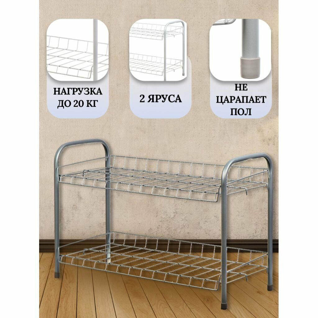 Полка для обуви, металл, 2 секции, 66х28х44 см, серая, Nika, ЭТ3/С