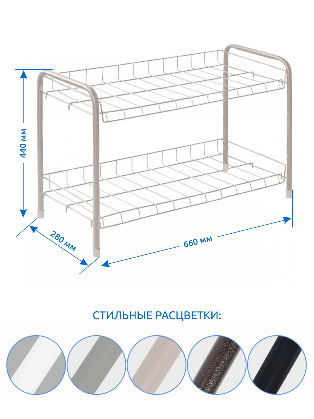 Полка для обуви 2-Х полоч 660Х280Х440 ЭТ3/СМ серый матов ижевск Н
