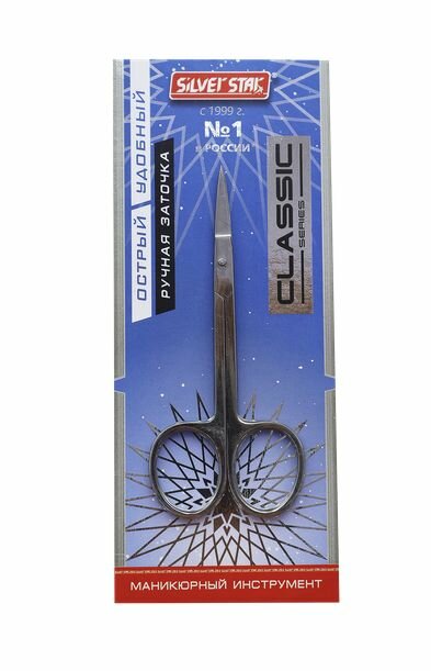 Сильвер Стар Ножницы маникюрные НСС-3 Classic классическая форма 95мм, прямое широкое лезвие 28мм, сталь, твердость 42-44 HRC, ручная заточка /