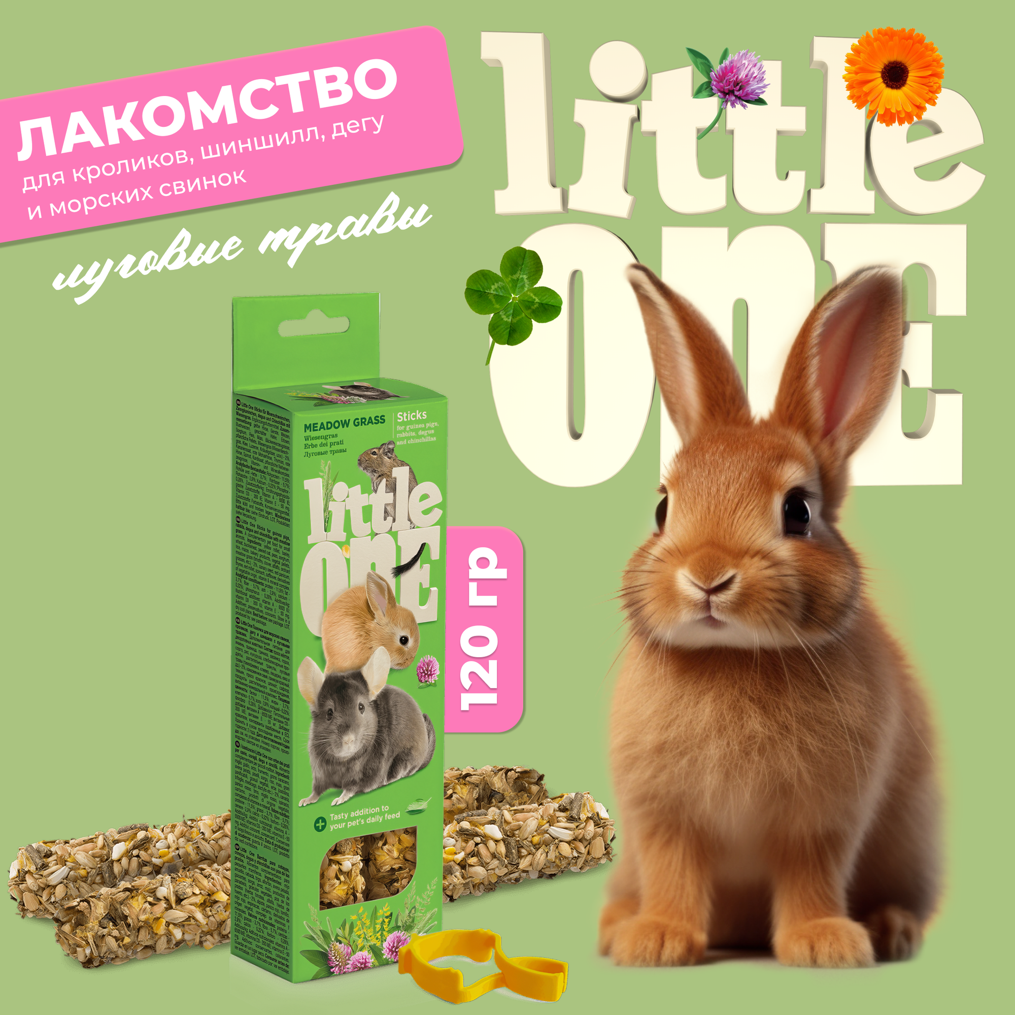Лакомство Little One для морских свинок, кроликов и шиншилл (с луговыми травами), 110 гр