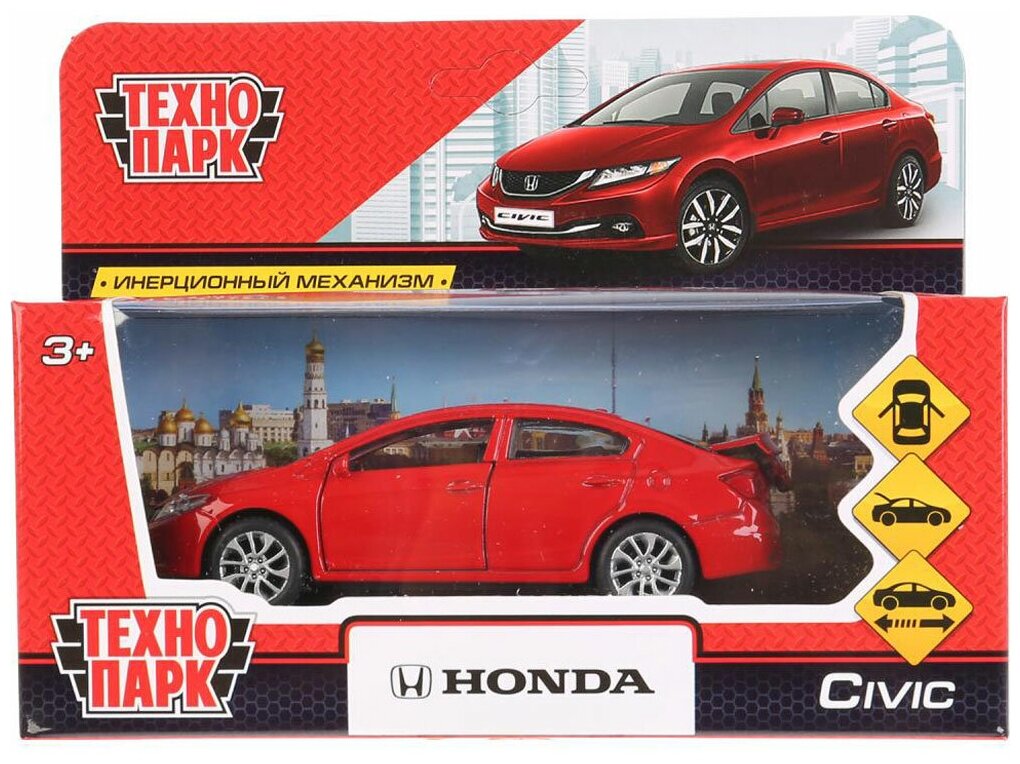 Автомобиль металлический инерционный HONDA CIVIC 12 см двери и багажник открываются Цвет Красный технопарк CIVIC-RD