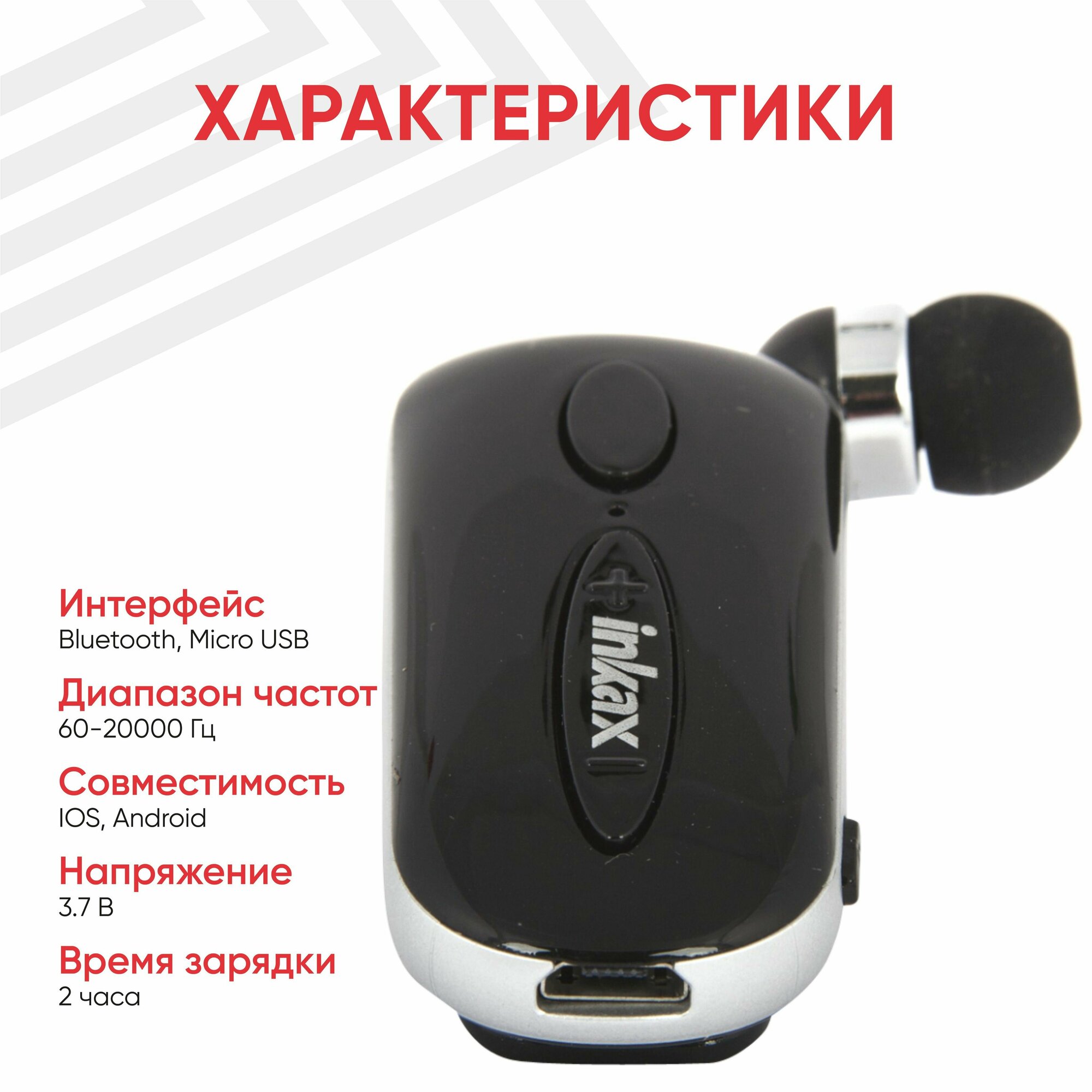 Bluetooth гарнитура inkax HP-08, моно, внутриканальная, черная интересное: