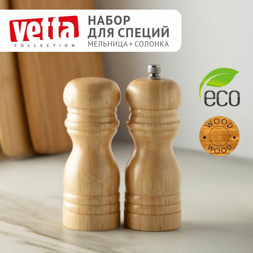 Набор для специй VETTA 2пр. мельница 14см + солонка 13см, дерево