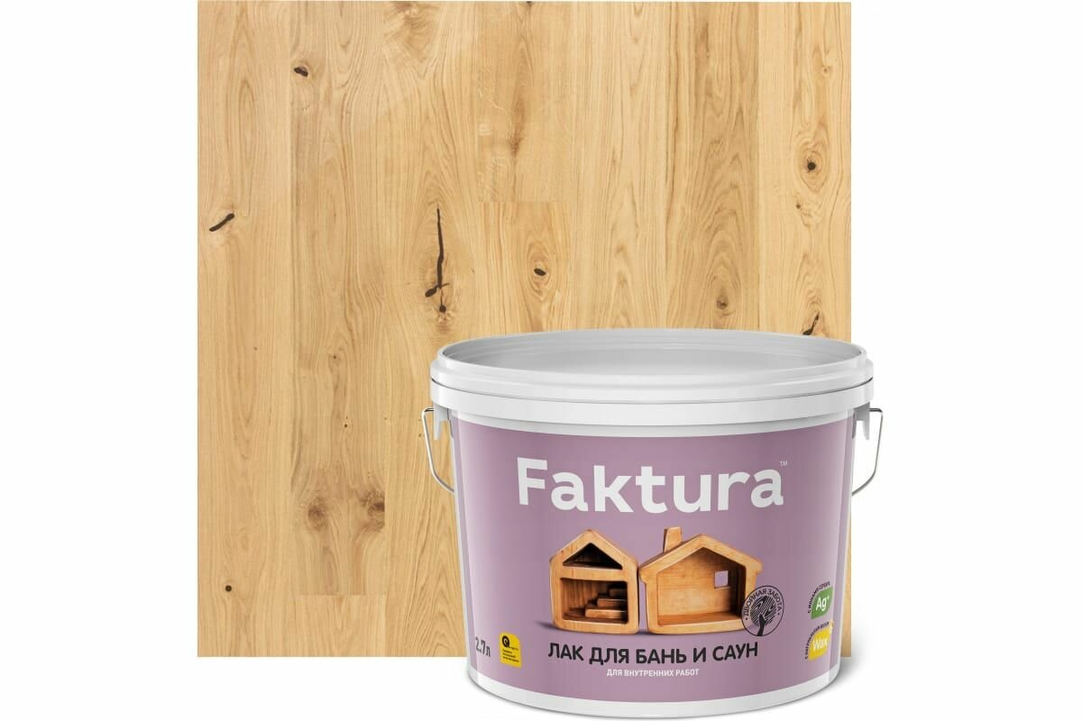 Термостойкий лак для бань и саун FAKTURA с ионами серебра и натуральным воском до 120°С, 2.7 л