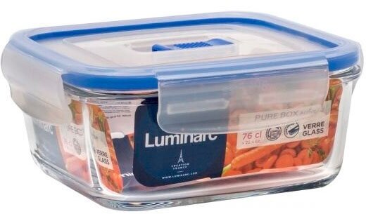 Контейнер квадратный Luminarc PUREBOX ACTIVE стеклянный, крышка на защелках, синий, 760мл