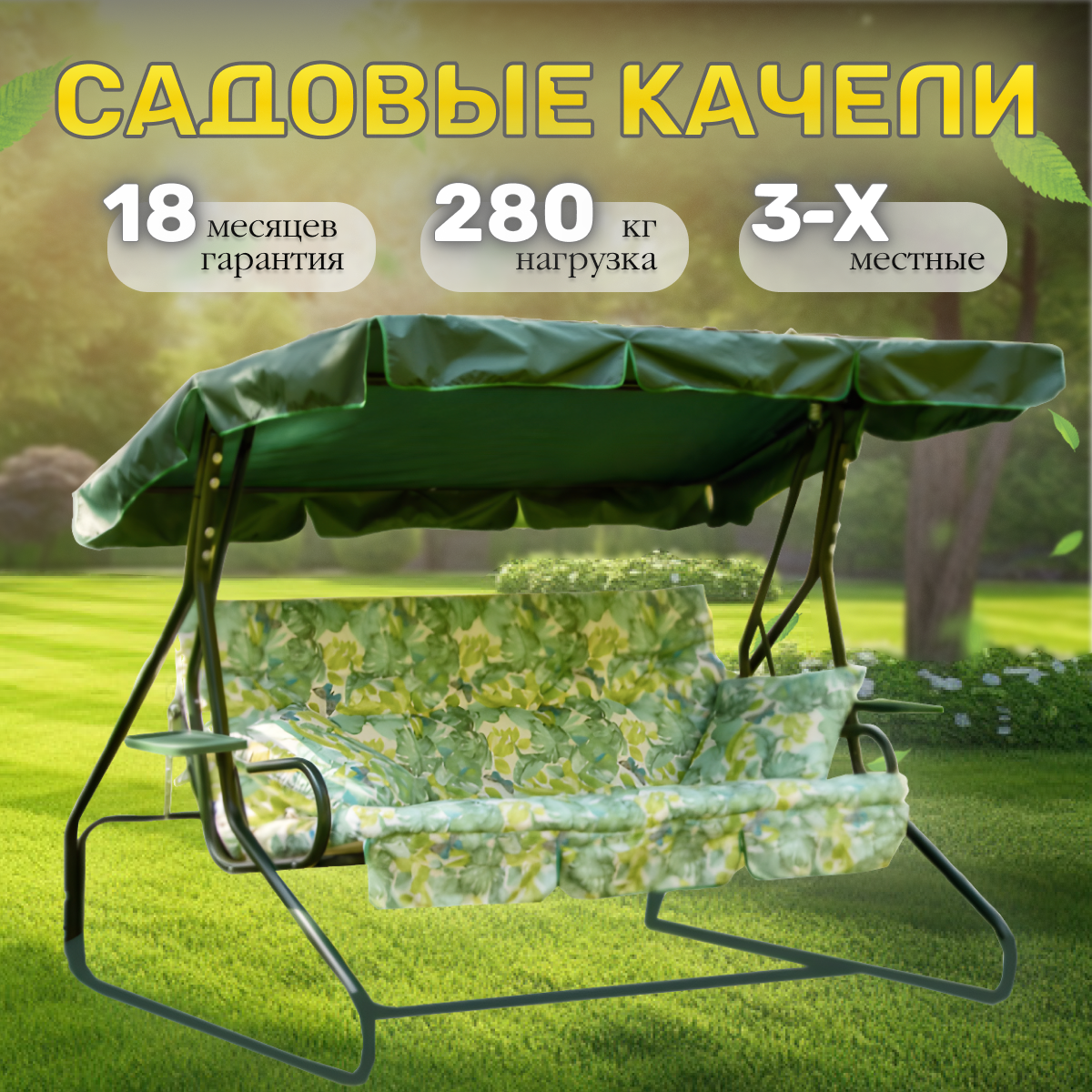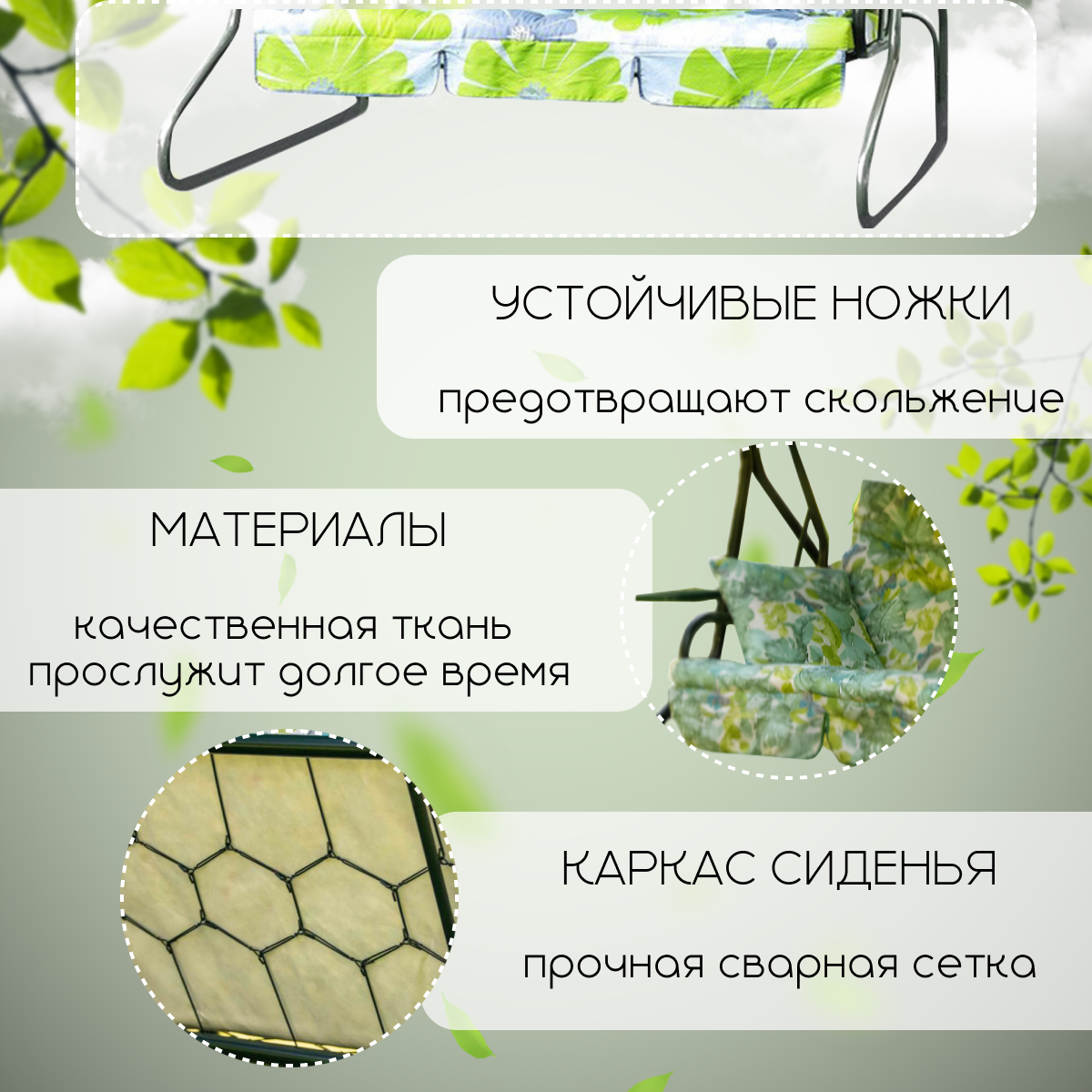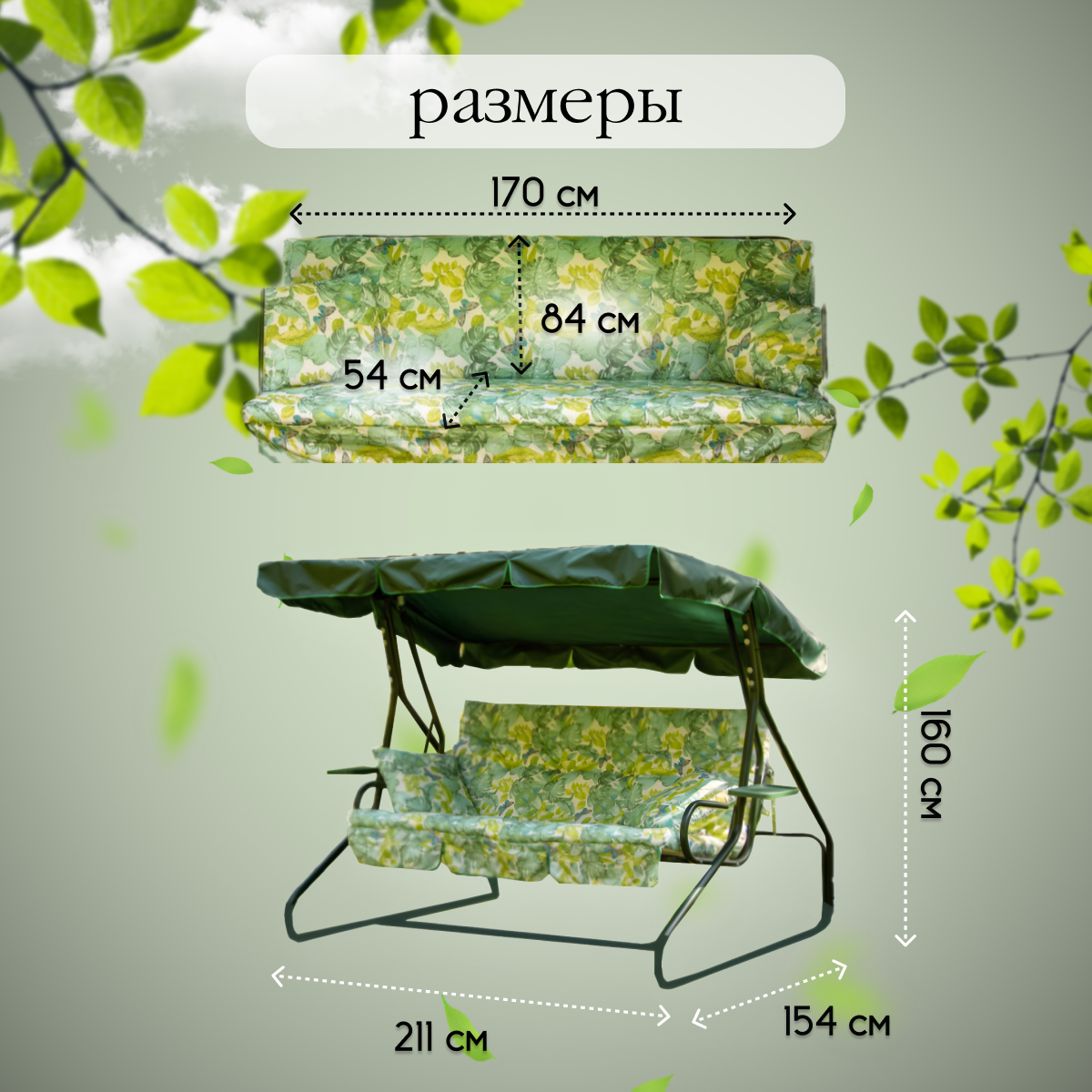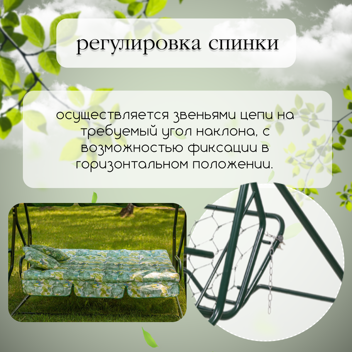 Качели садовые Olsa, трехместные Люкс 3, 214 x 154,3 x 160 см, каркас зеленый
