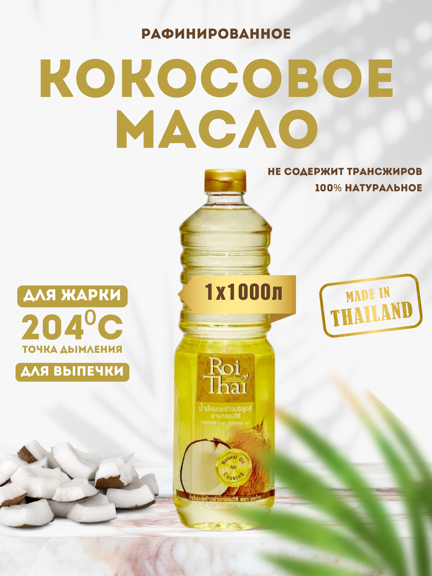 Кокосовое масло рафинированное ROI THAI 1000 мл vegan/натуральный продукт/высшей степени очистки