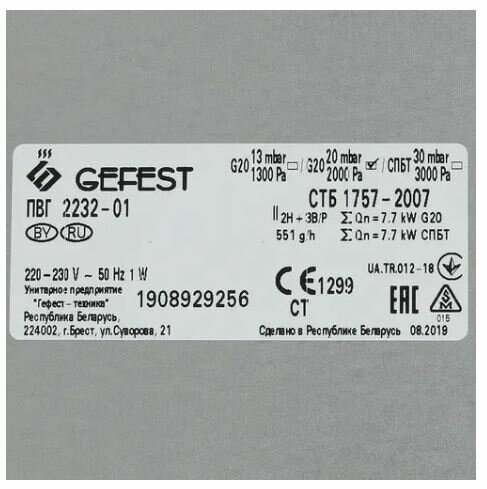 Варочная панель ГЕФЕСТ пвг 2232-01 в81