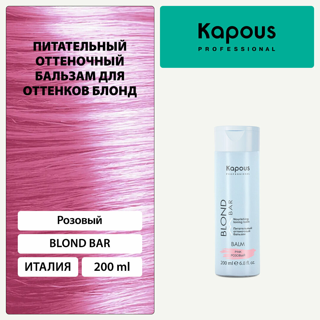 Бальзам оттеночный питательный Kapous «Blond Bar» для оттенков блонд, Розовый, 200 мл