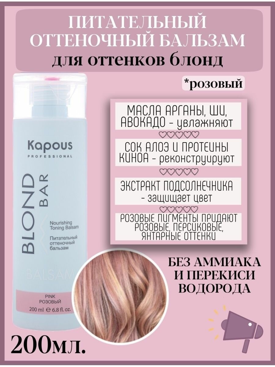 СохранитьKAPOUS BLOND BAR питательный оттеночный бальзам "розовый" 200 МЛ интересное: