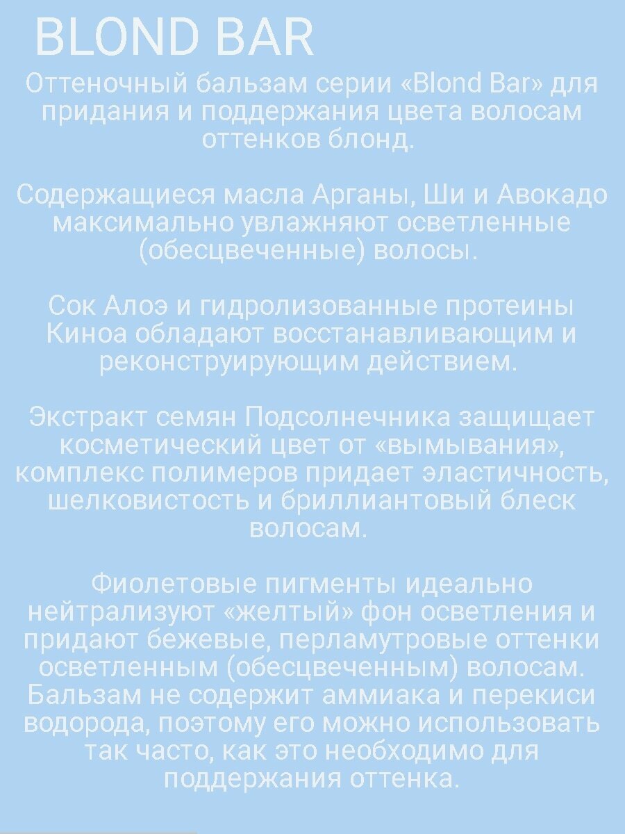 Бальзам оттеночный питательный для оттенков блонд / BLOND BAR \ 200 мл розовый