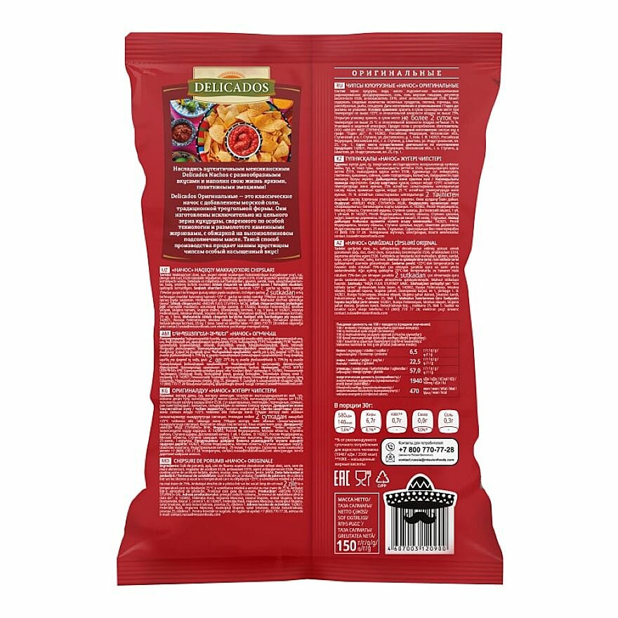 Чипсы кукурузные DELICADOS Nachos Оригинальные, 150г
