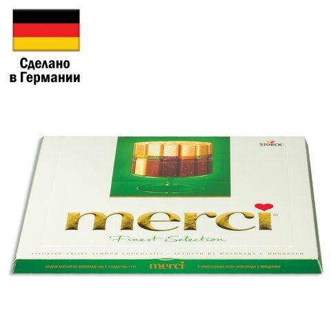 Конфеты шоколадные MERCI (Мерси), ассорти из шоколада с миндалем, 250 г, картонная коробка, 014457-20