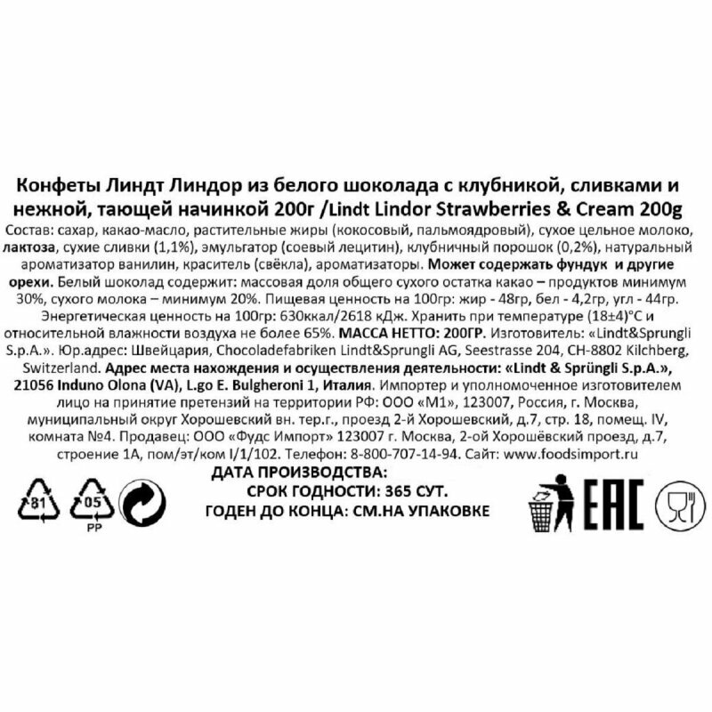 Купить Шоколадные конфеты Lindt Lindor клубника и сливки 200 гр (Финляндия)
