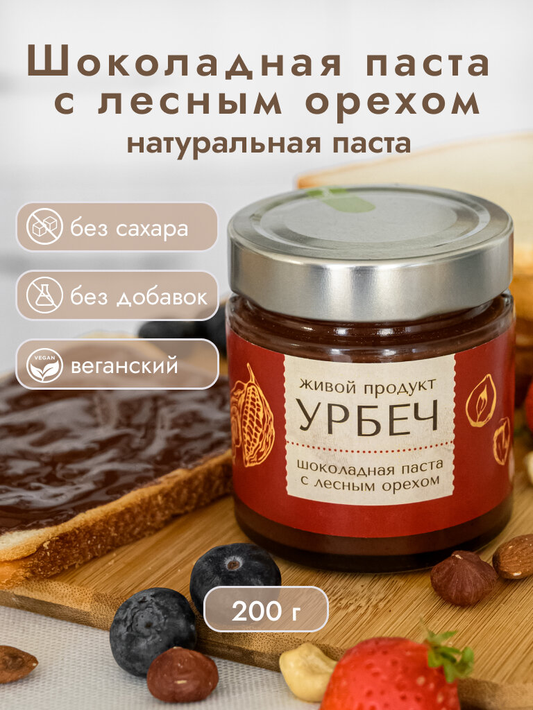 Купить Шоколадная паста Живой Продукт с лесным орехом, урбеч из какао-бобов и фундука, 200 г