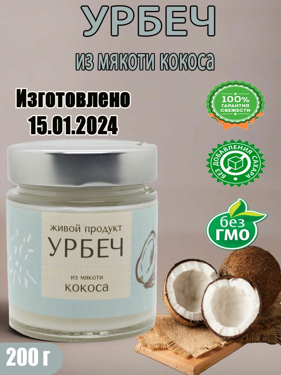 Купить Урбеч Живой Продукт из мякоти кокоса 200 г натуральная паста без добавок без сахара кокосовое масло