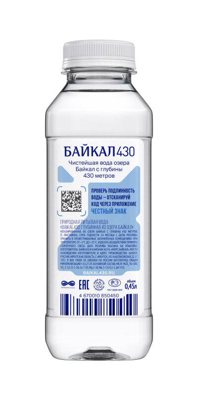 Вода негазированная питьевая BAIKAL 430, 0,45 л, 4670010850450 622413