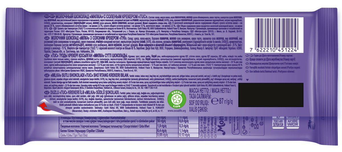 "Милка" молочный шоколад с солен. крекером TUC 87г интересное:
