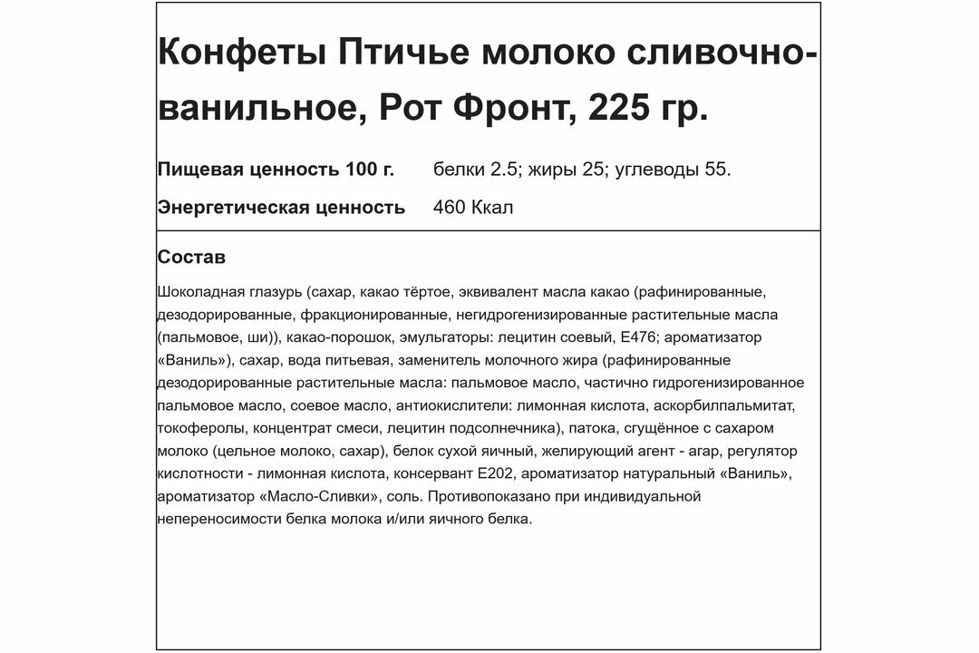 СохранитьКонфеты Рот Фронт Птичье молоко сливочно-ванильные 225 г интересное: