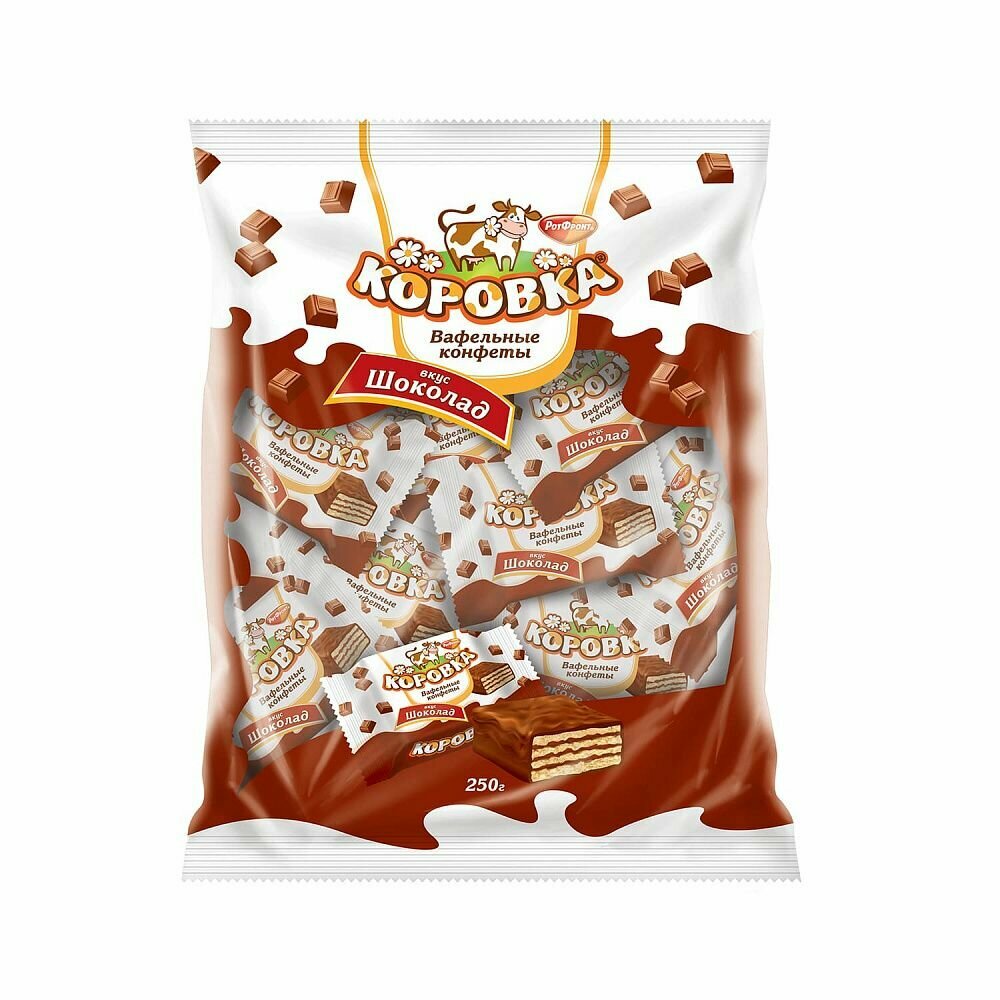 Конфеты шоколадные РОТ фронт "Коровка", вафельные с шоколадной начинкой, 250 г, пакет, РФ09756 В комплекте: 1шт. интересное: