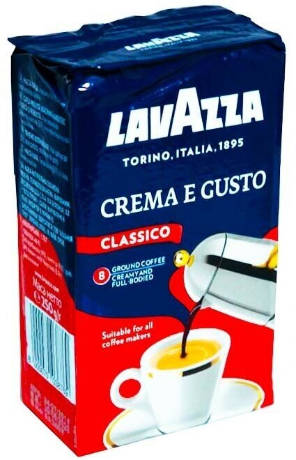 Кофе молотый Lavazza Crema e Gusto Classico, вакуумная упаковка, 250 г, вакуумная упаковка