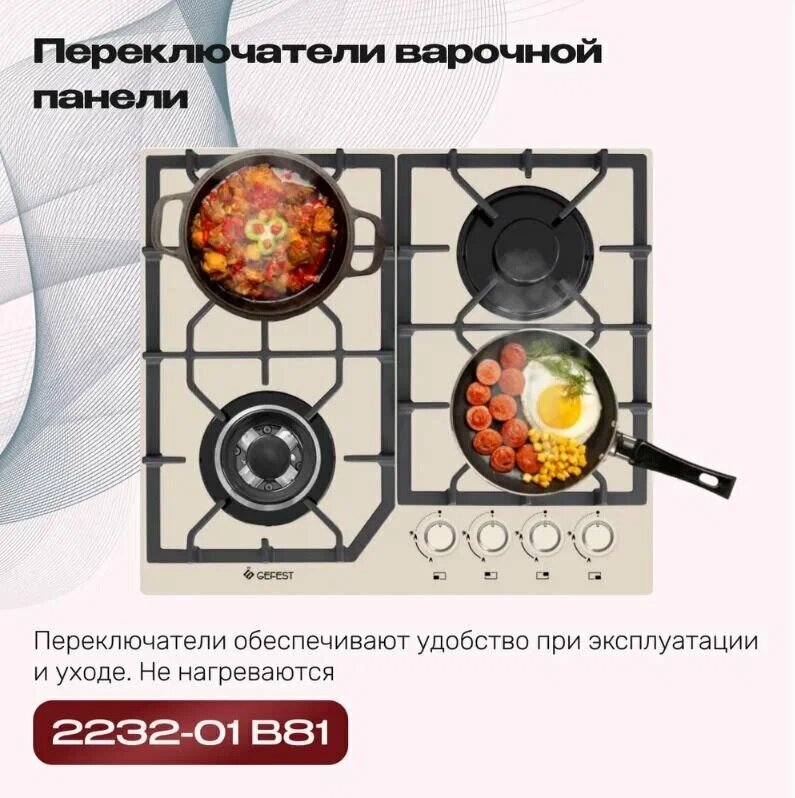 Газовая варочная панель Gefest ПВГ 2232-01 В81 кремовый .