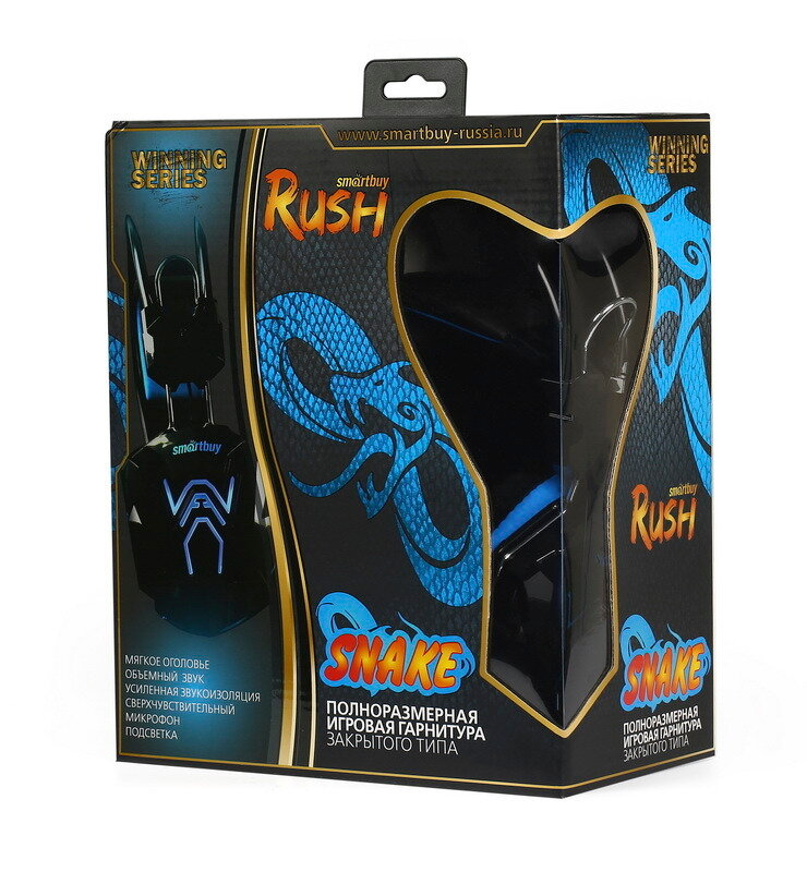 Игровая гарнитура RUSH SNAKE, динамики 40мм, велюровые амбушюры, черн/синяя (SBHG-1000)