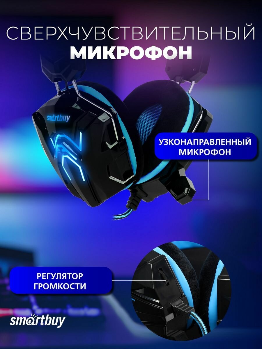 Игровая гарнитура Smartbuy RUSH SNAKE Blue (проводная, микрофон, USB/2х3.5 мм, подсветка)