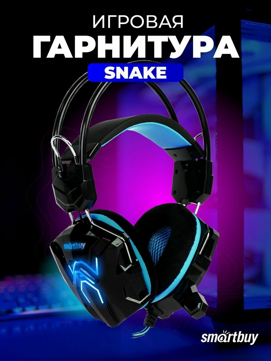 Компьютерная гарнитура SmartBuy RUSH SNAKE, черный/синий