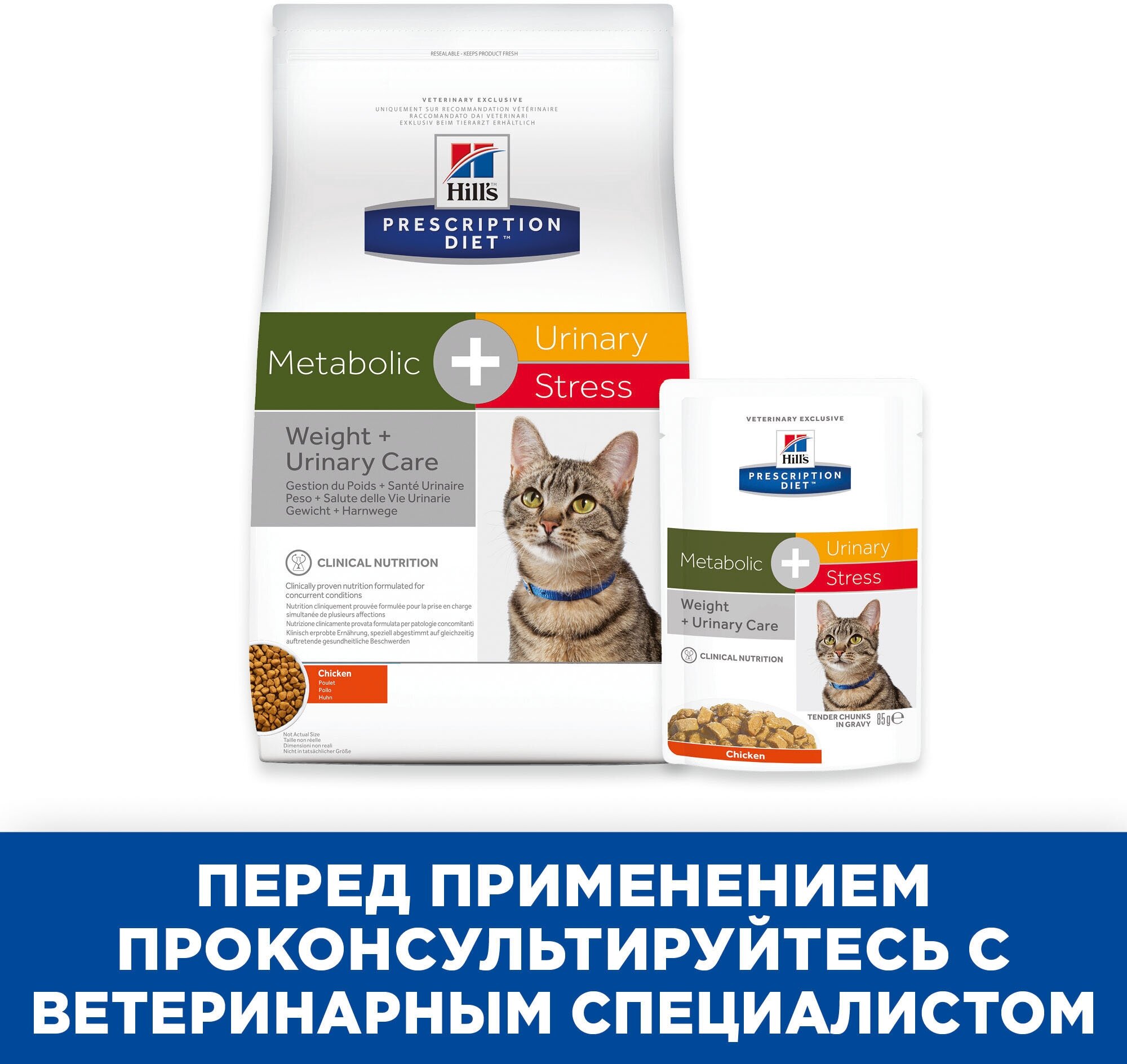 Сухой диетический корм для кошек Hill's Prescription Diet Metabolic, Urinary Stress при профилактике цистита, вызванного стрессом и способствует снижению и контролю веса, с курицей, 1,5 кг