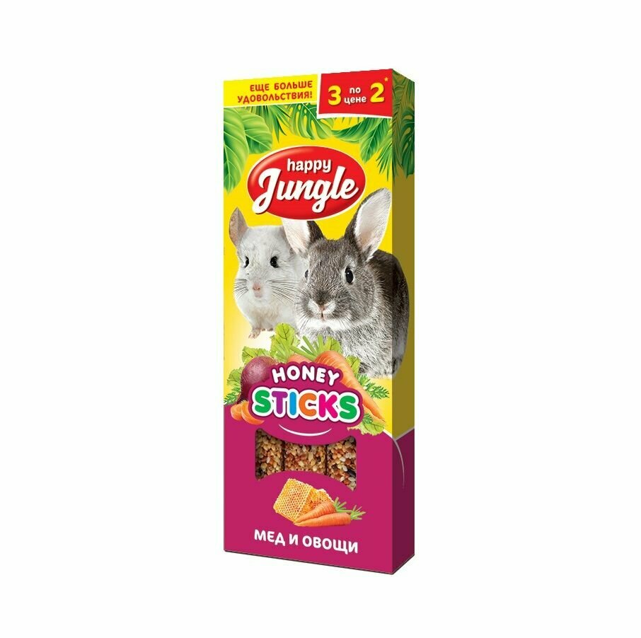 Happy Jungle: Зерновые палочки, Мёд и овощи, для кроликов, морских свинок, шиншилл, 3 шт, 90 гр