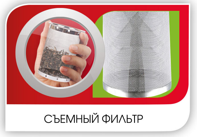 | Минусы: | Чаша с заваркой заканчивается в середине чайника а значит не получится заворить чай если мало воды или если надо заварить пару порций, только заливать полный чайник а это не всегда нужно. |