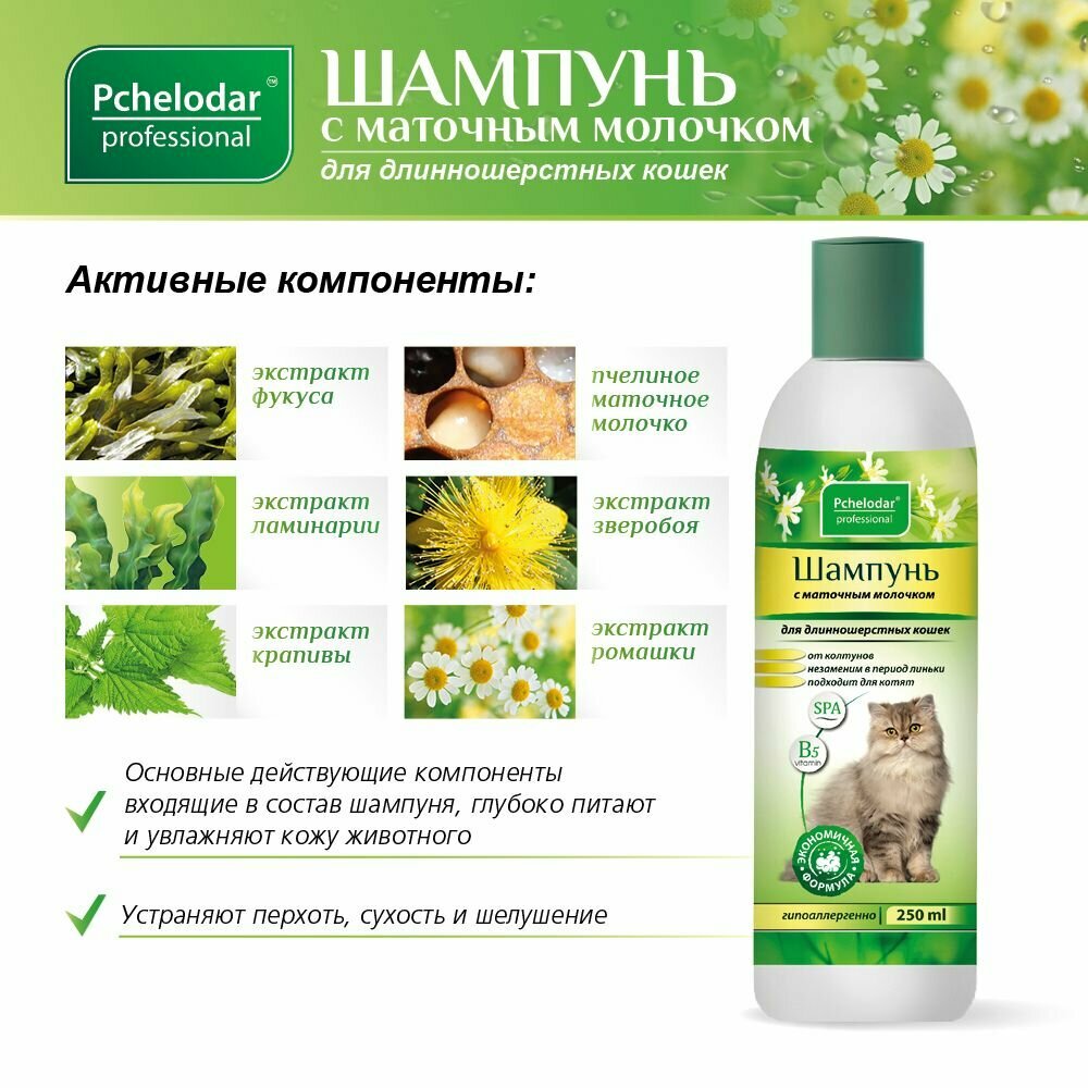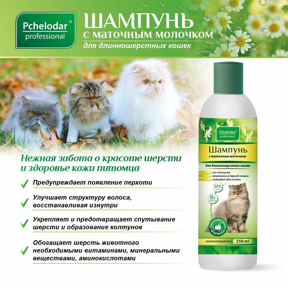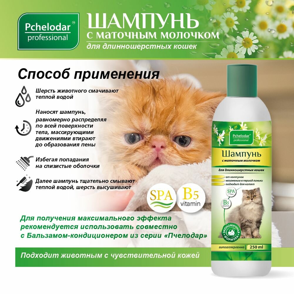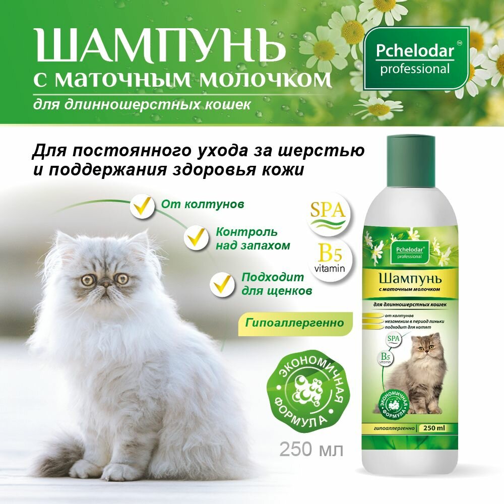 Купить Пчелодар шампунь для длинношерстных кошек с маточным молочком 250 мл (1 шт)