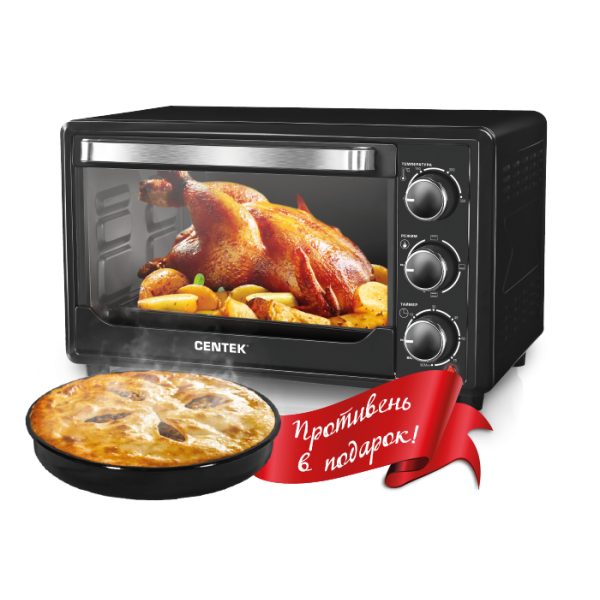 Купить Жарочный шкаф Centek CT-1537-30 BLACK(черн) <30л> 1600Вт +противень, таймер 90мин, 4 реж., max 320°