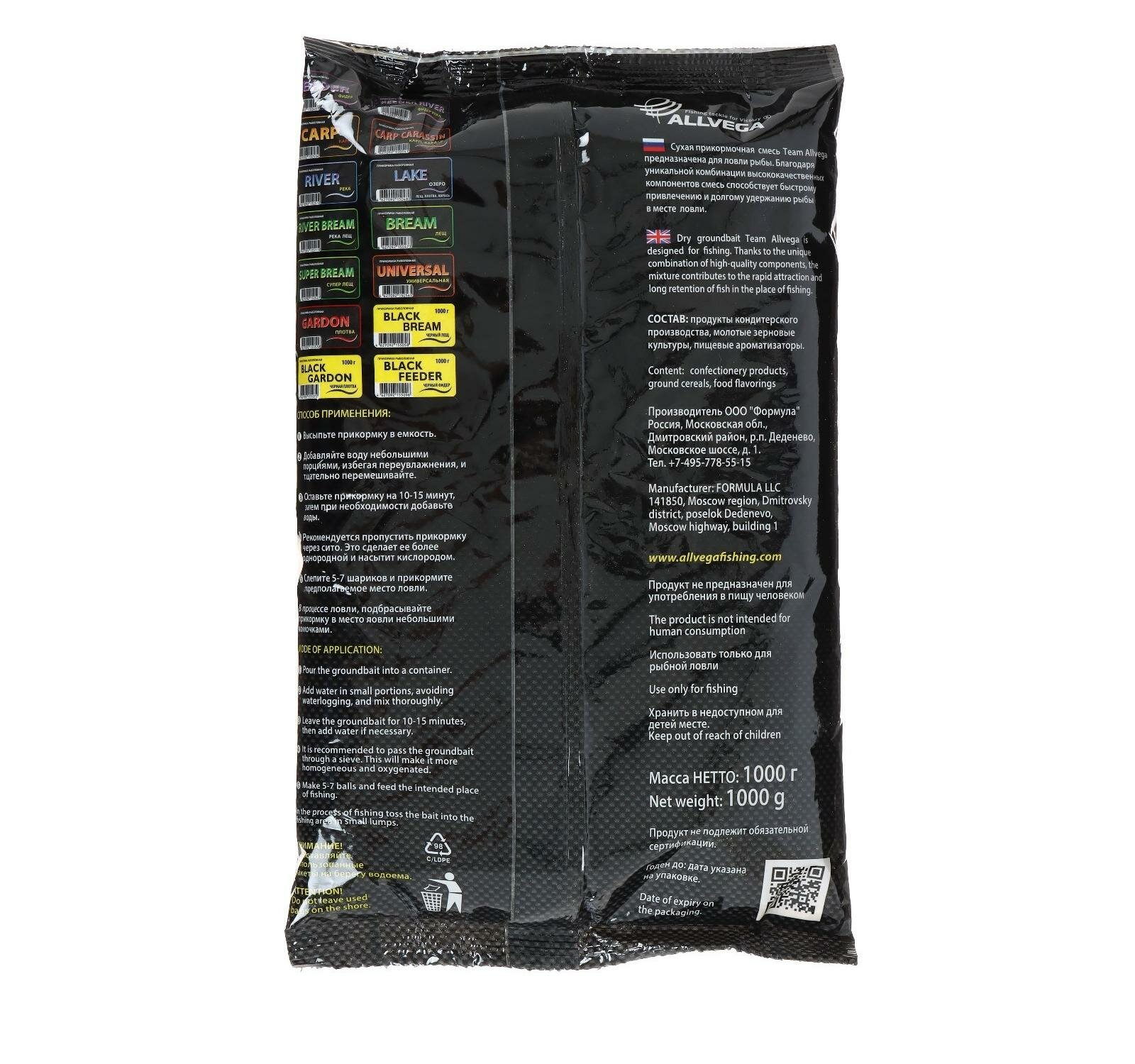 Прикормка ALLVEGA "Team Allvega Super Bream" 1кг (супер ЛЕЩ) 5 пакетов по 1 кг.