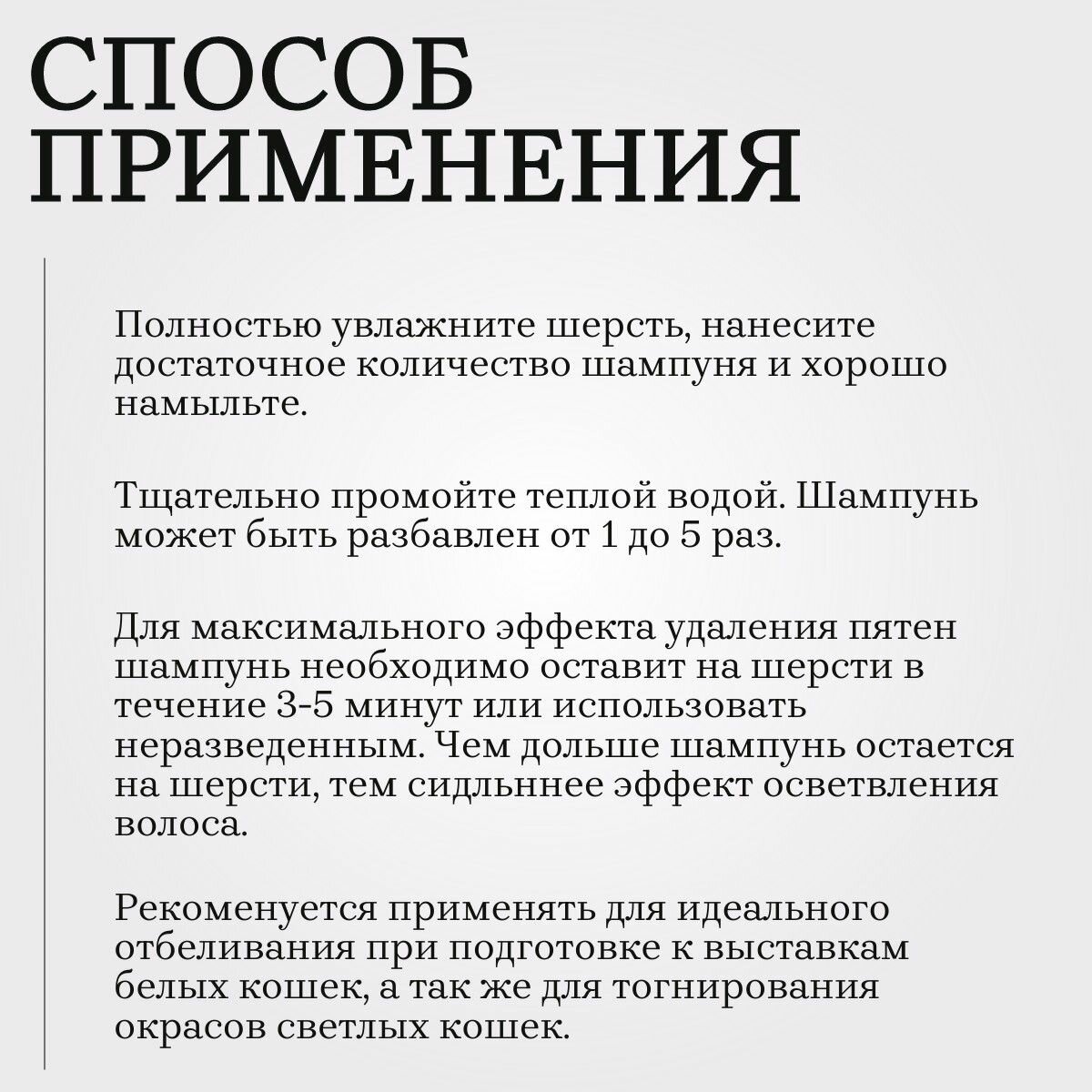 | Плюсы: | Шерсть стала намного белее. Хорошо смывается |