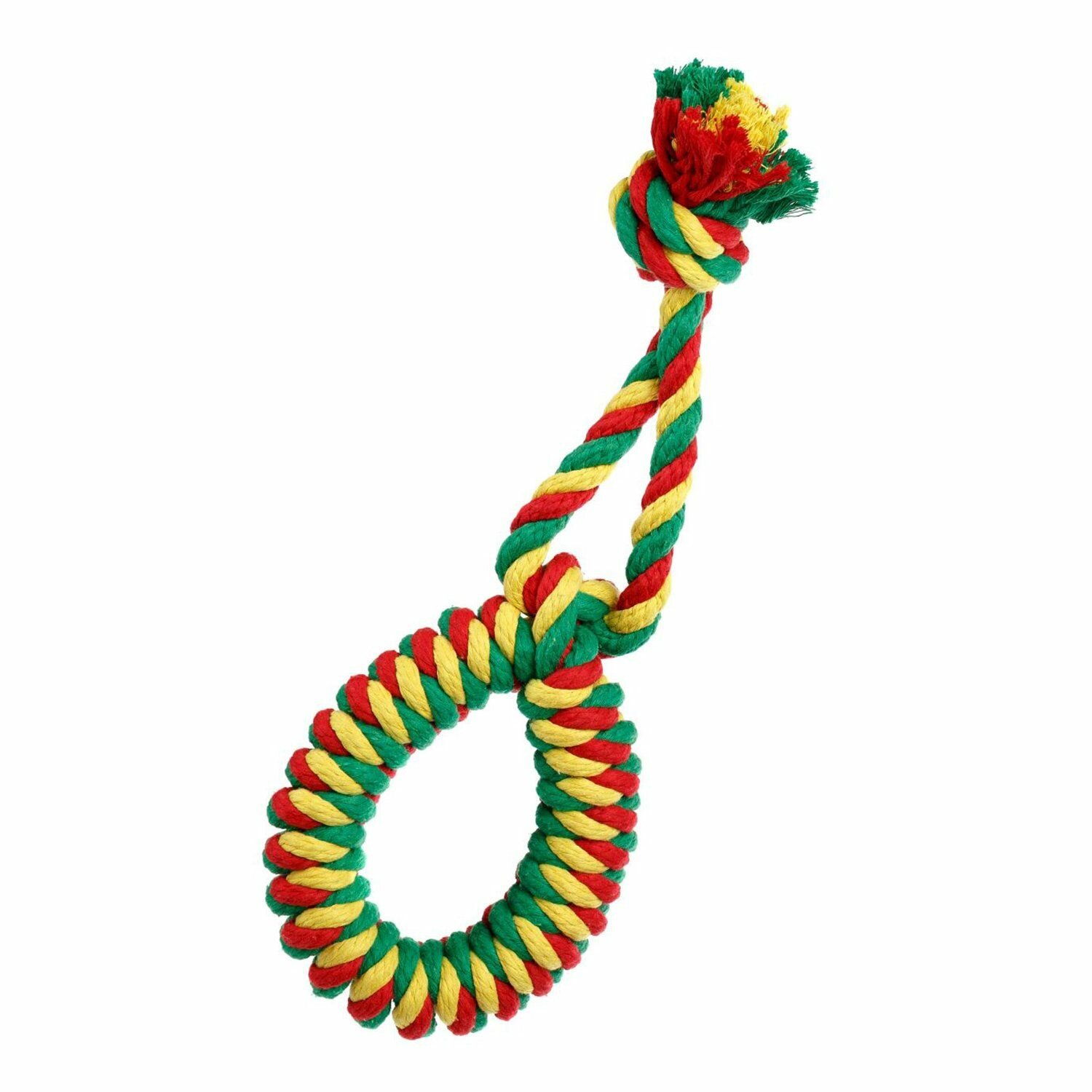 СохранитьИгрушка для собак Doglike "Канатное кольцо", малое, цвет: красный, желтый, зеленый, длина 26 см, диаметр 10 см интересное: