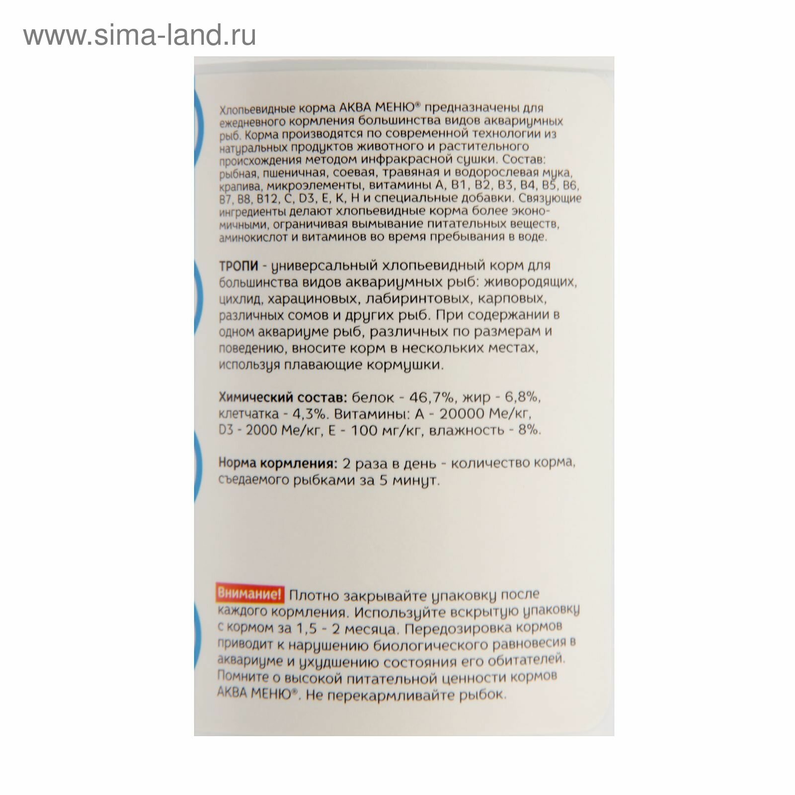 Ниже Вы можете прочитать отзывы на Аква меню Корм Аква меню "Тропи" для рыб, 600 мл, ознакомится с подробными характеристиками, посмотреть интересные обзоры и фотографии на Аква меню Корм Аква меню "Тропи" для рыб, 600 мл.