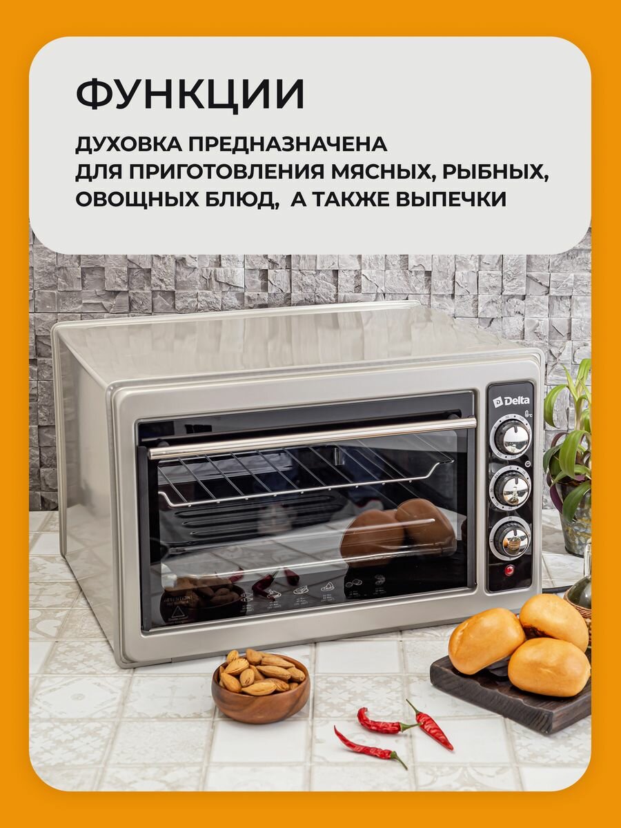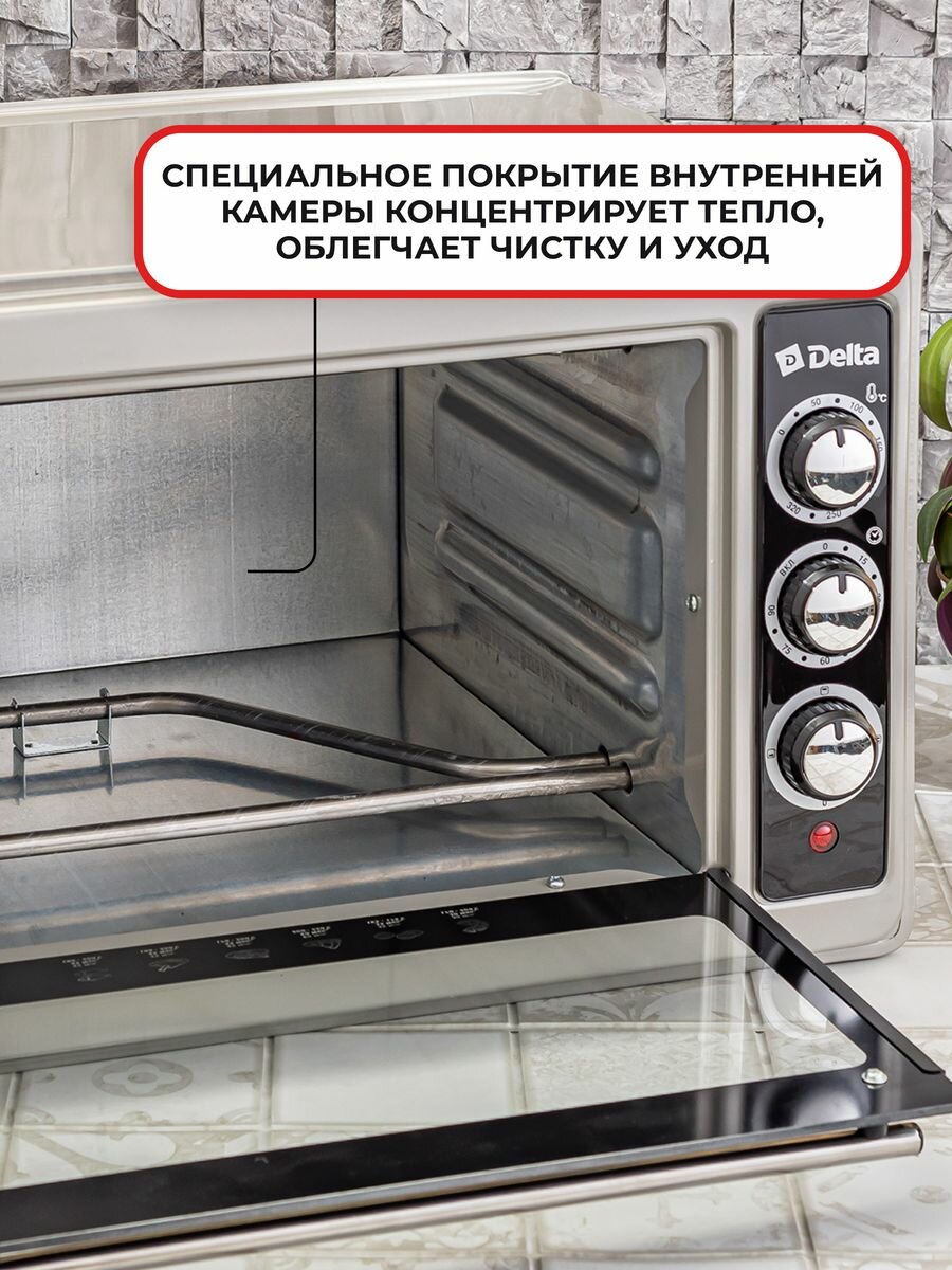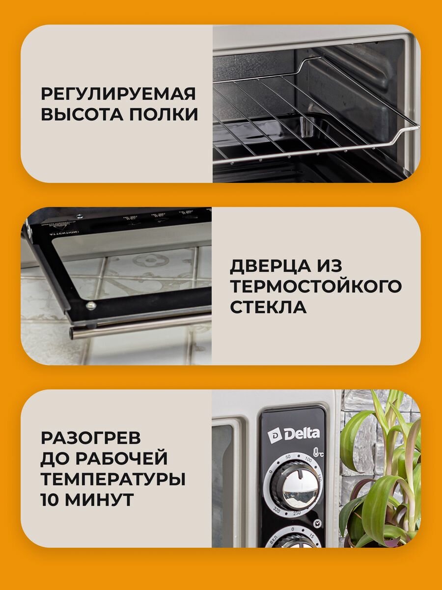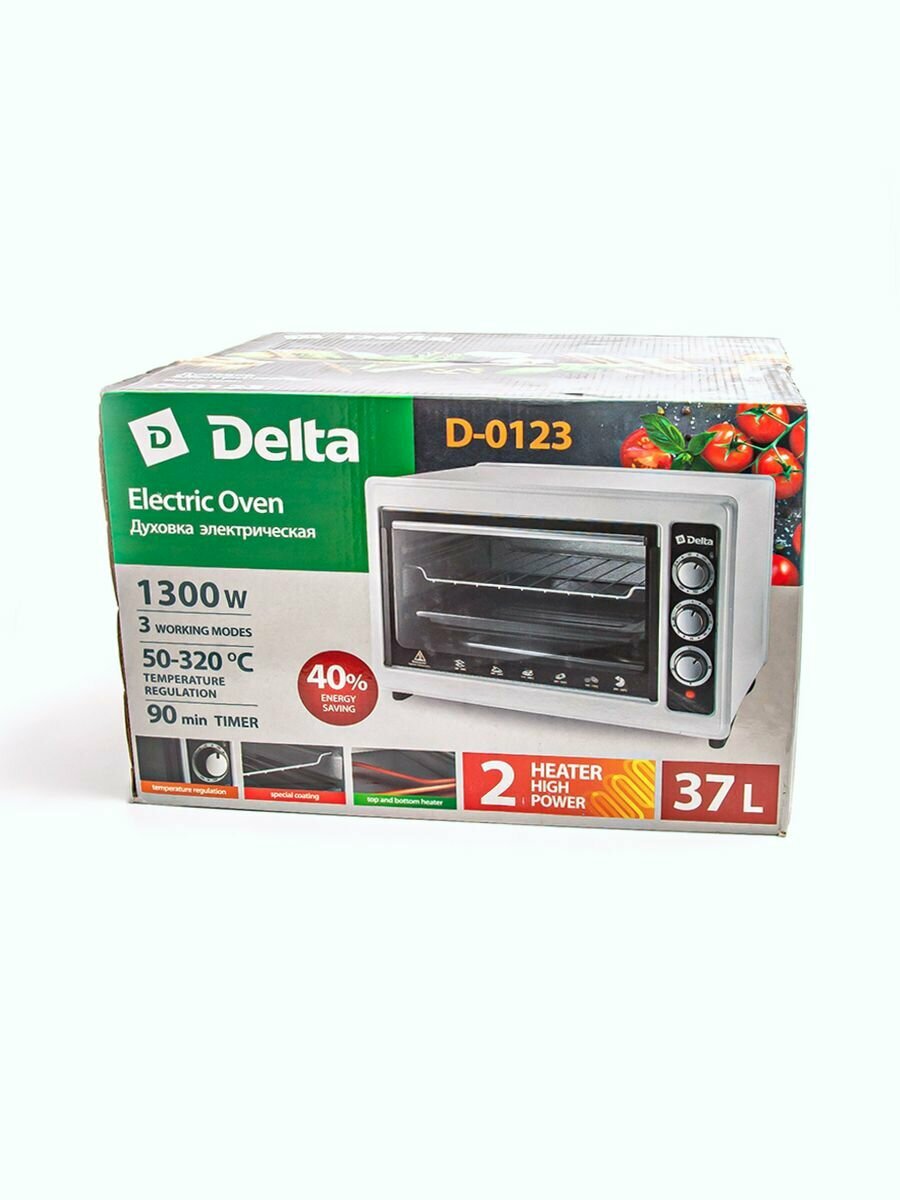 Духовка электрическая, Delta, D-0123, 37 л, 1300 Вт, с термостатом, тен повышенной мощности, 2 нагревательных элемента, черная