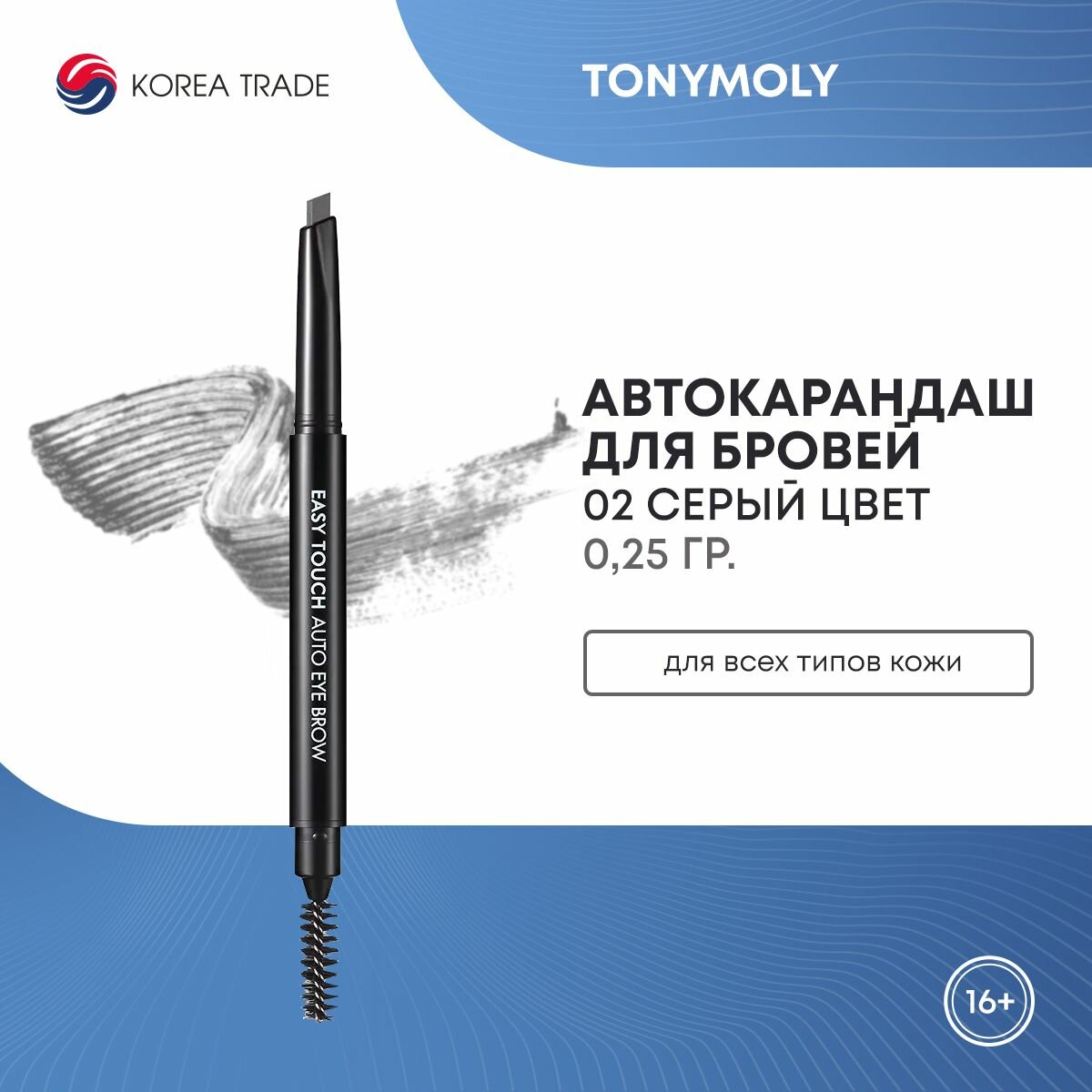 Купить TONYMOLY EAST TOUCH AUTO EYEBROW - 02 GRAY Автокарандаш для бровей 0.25г