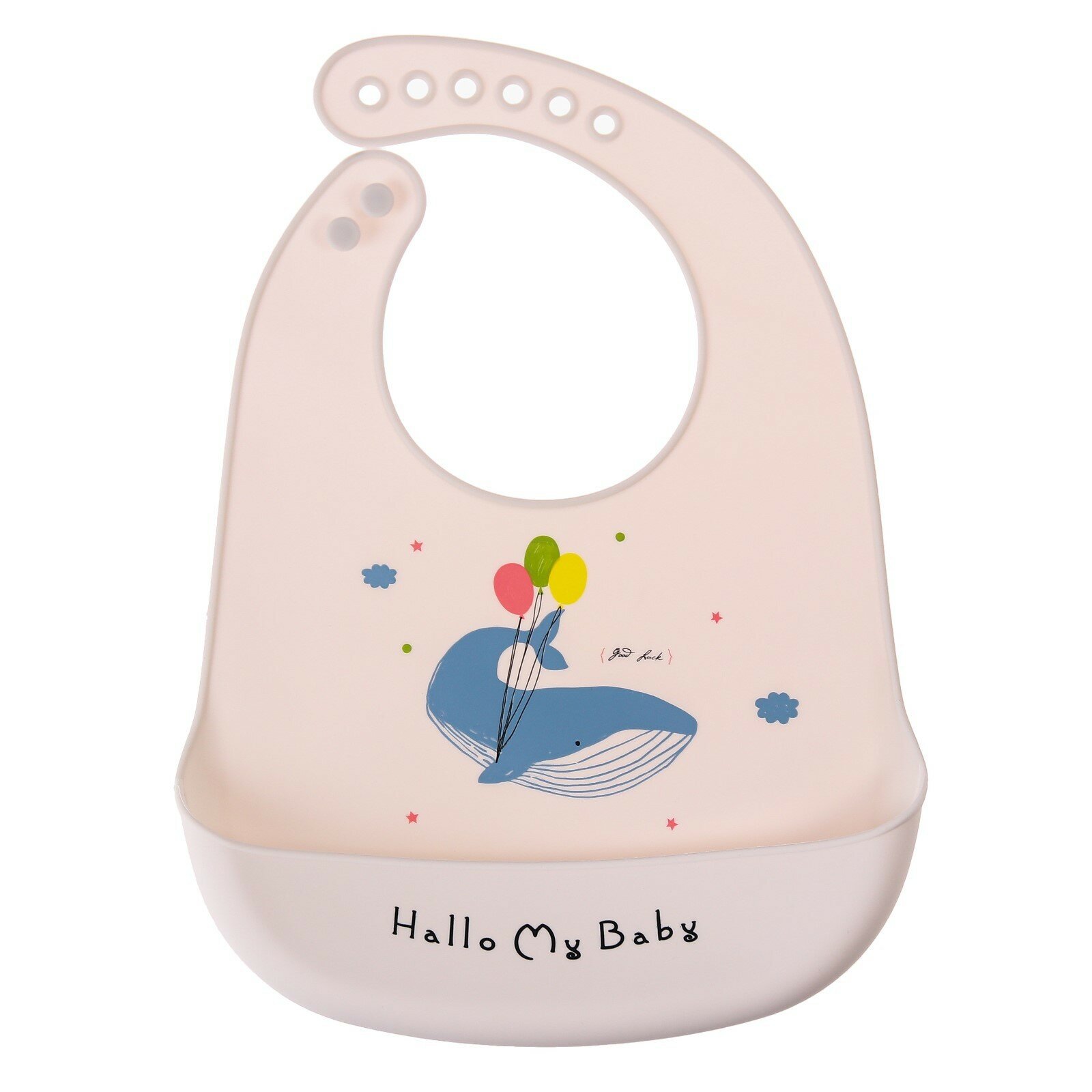 Mum&Baby Нагрудник силиконовый, на кнопках, с карманом «Кит», цвет серый/белый