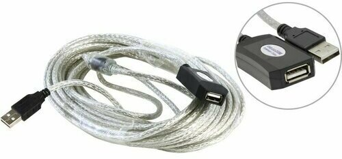 Удлинитель Aopen USB-USB (ACU823), прозрачный, 10 м