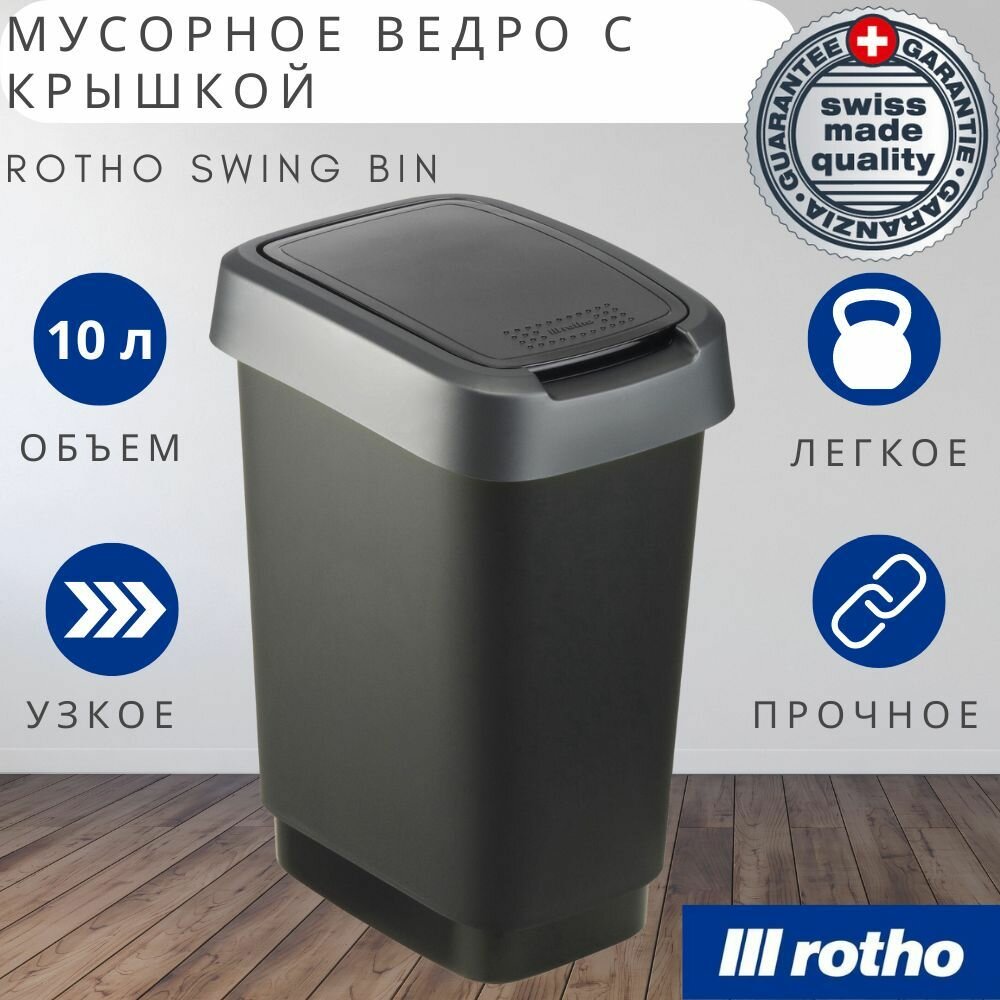 Мусорное ведро с крышкой для кухни и дома Rotho Swing bin 10 литров