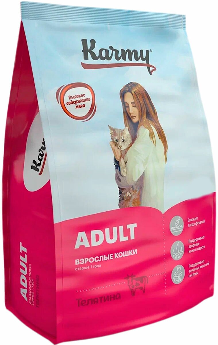 Karmy Сухой корм для взрослых кошек старше 1 года с телятиной 73300 | Karmy Adult, 1,5 кг