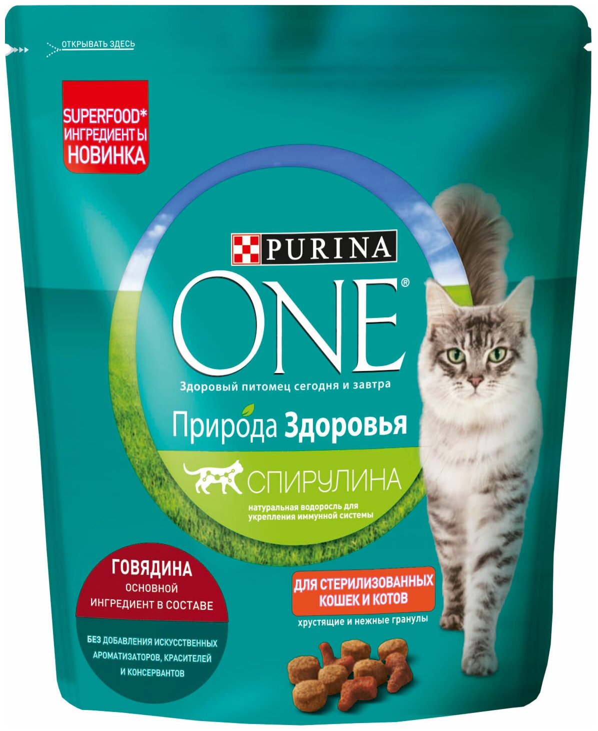 Купить Сухой корм Purina ONE Природа Здоровья для стерилизованных кошек и кастрированных котов, с высоким содержанием говядины, 680 г, 2 шт
