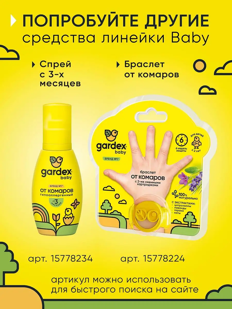 Аэрозоль Gardex Baby от клещей и комаров для детей, 150 мл