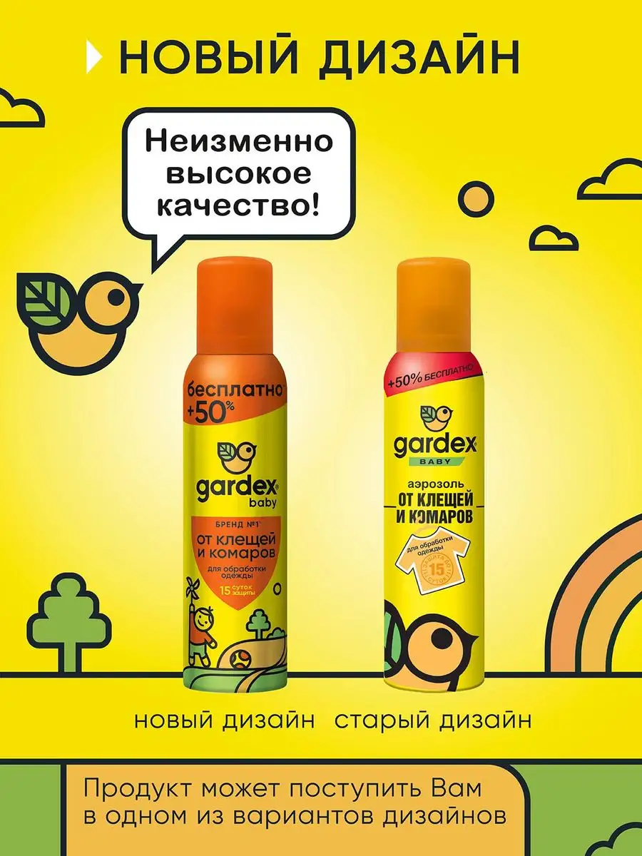 Аэрозоль от клещей и комаров Gardex Baby 100 мл + 50мл в Подарок