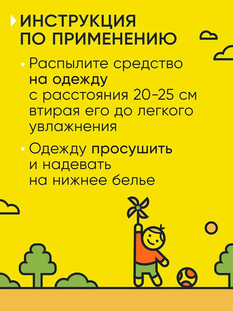 | Отзыв: | Средство очень действенное, и применять его просто, наношу на одежду, даю время просохнуть и спокойно одеваю на детей. Никакой реакции в плане раздражения на коже, аллергии и прочего нет. Запах приятный, действует средство долго, если осле прогулки одежду убирать в пакет, то еще дольше можно не проводить повторную обработку. Я довольна, для малышни самый оптимальный вариант. |