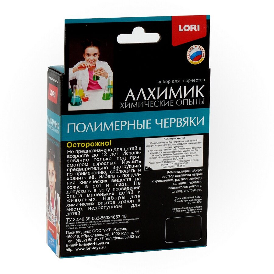 Lori Набор Химические опыты.Полимерные червяки красный и синий