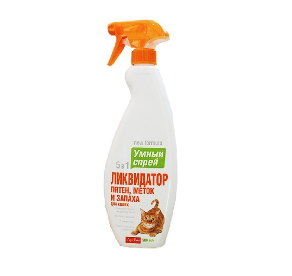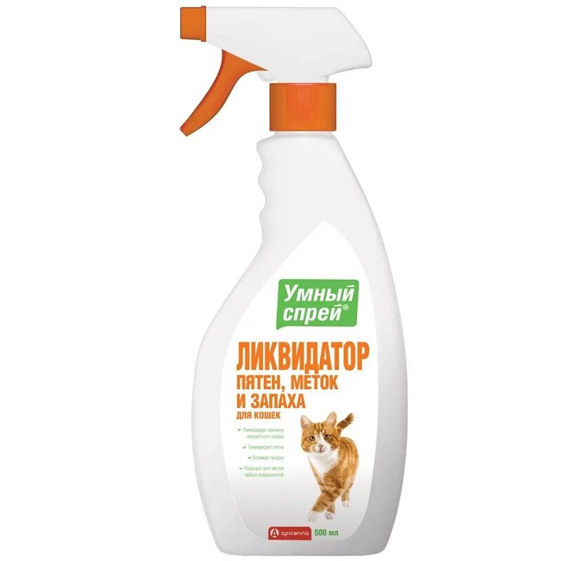 Спрей для содержания питомцев Apicenna Умный спрей Ликвидатор пятен, меток и запаха для кошек, 500 мл